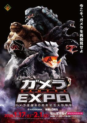 ガメラシリーズの軌跡と魅力に迫る展示・物販イベント「ガメラEXPO」。ファンのみなさまの熱い期待に応え、大阪・なんばマルイでも開催!有楽町での熱気はそのままに、ガメラシリーズの魅力を凝縮した「ガメラEXPO」が、万博が開催された大阪の地に、ジャイガーの如く上陸!この機会をお見逃しなく!!
