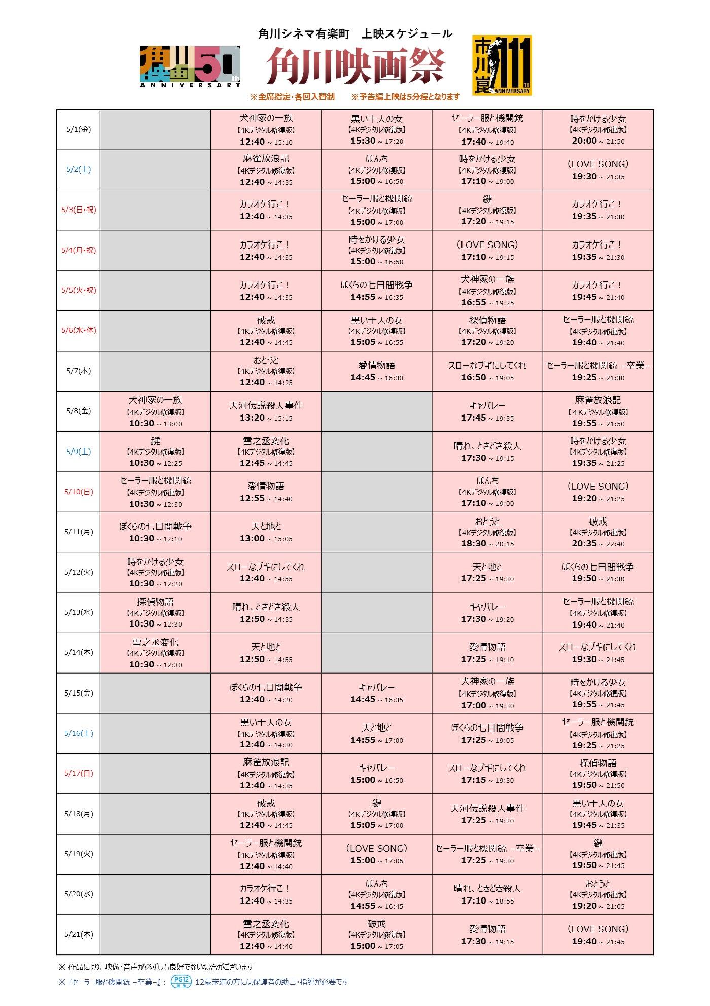 「角川映画祭」角川シネマ有楽町の上映スケジュール【5/1(金)~5/21(木)】が決定しました!ぜひご来場ください。